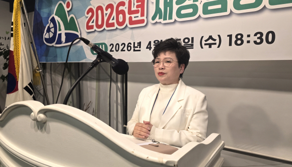 | 정승은 회장이 인사말을 하고 있다. |